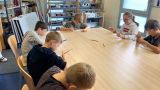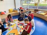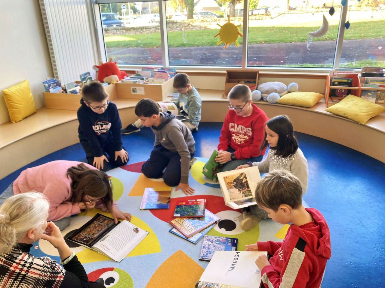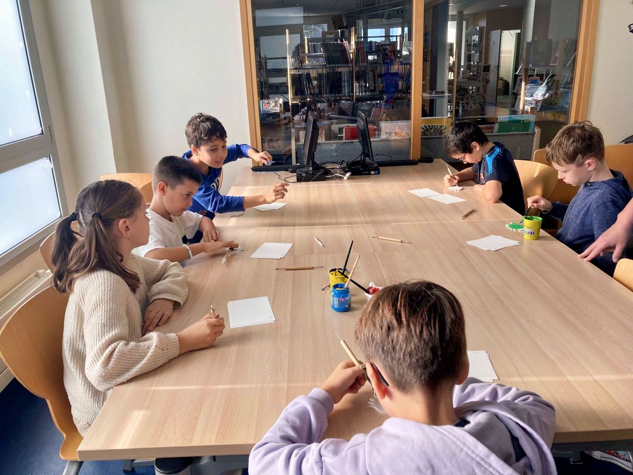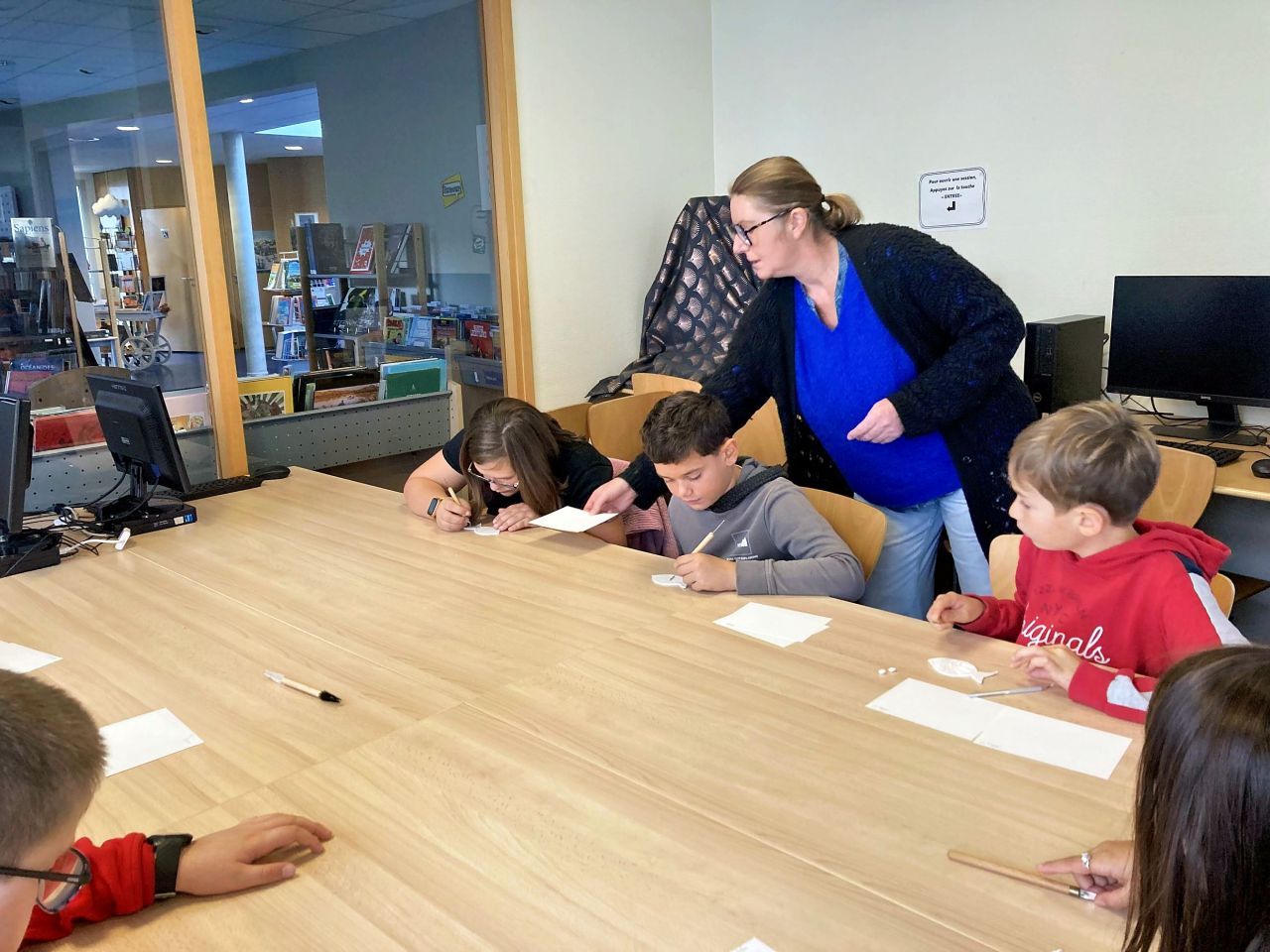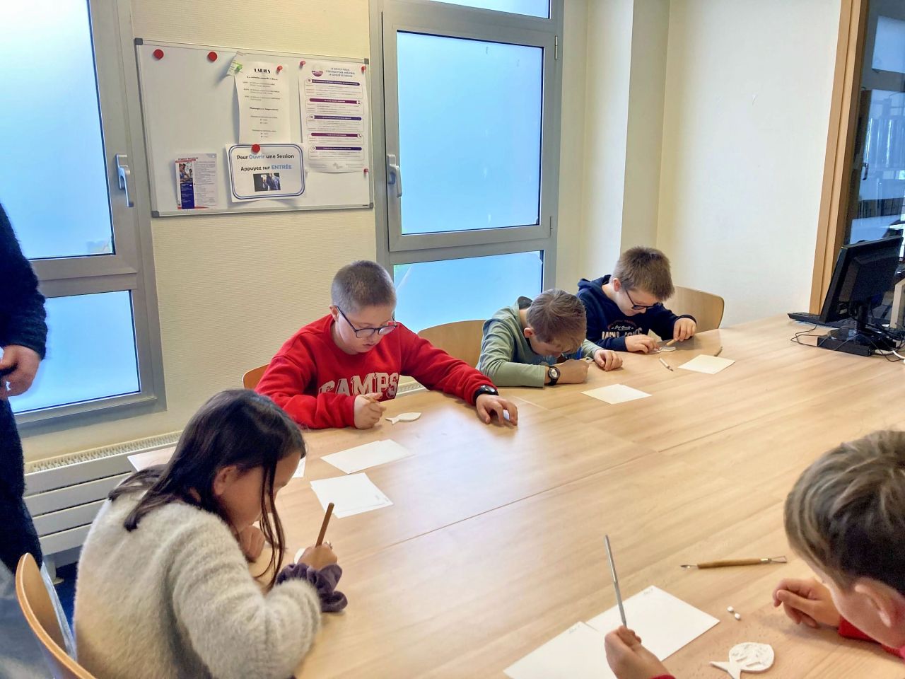 Jeudi 6 novembre, les élèves de CM1-CM2 sont allés à la médiathèque pour participer à des ateliers autour d’une exposition d’œuvres d’art.